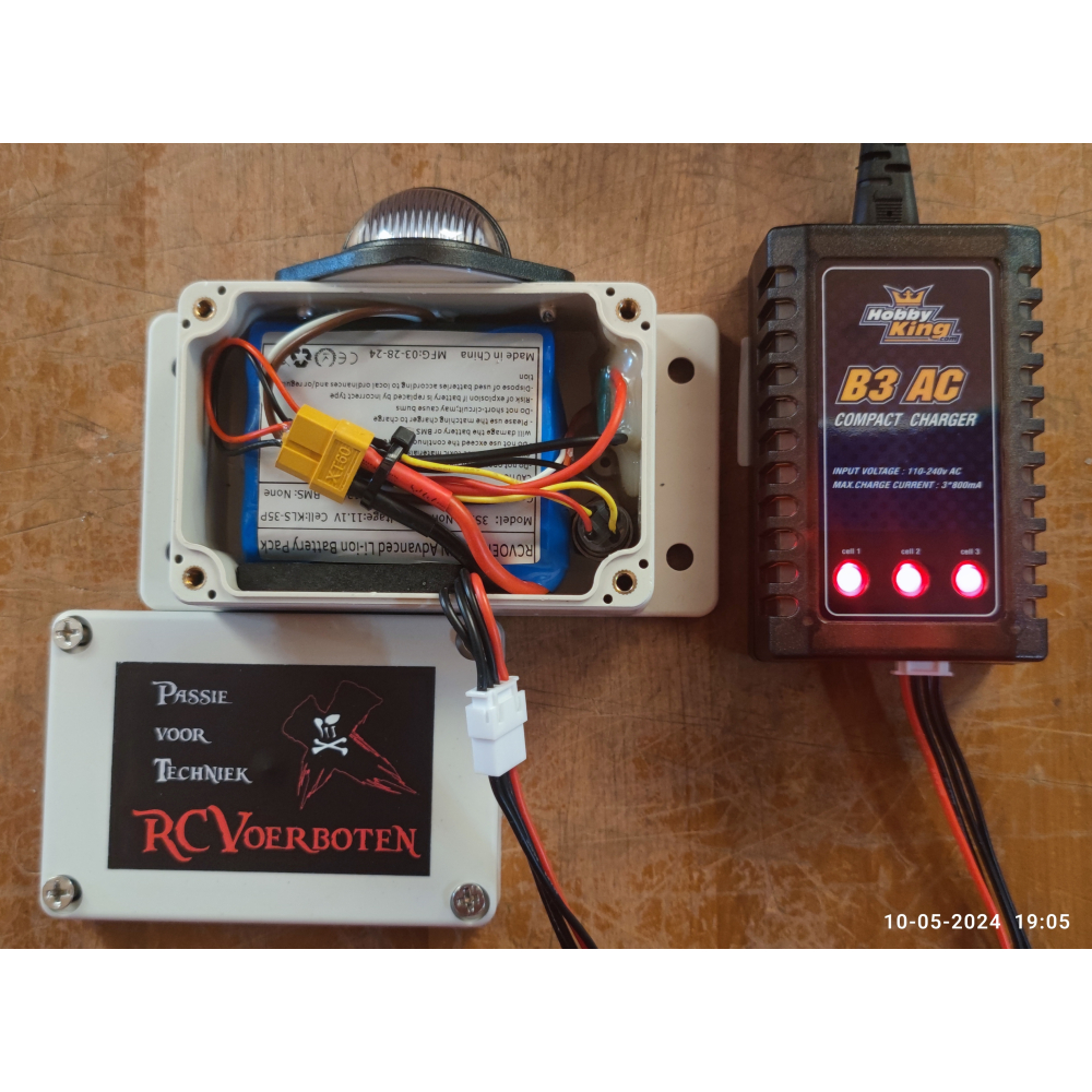Een handig apparaat wat reageert op luid geluid (je sounderbox bijvoorbeeld) en waarbij er een LED verlichting aangaat zodat je ziet waar je mee bezig bent. Het getoonde apparaat is inclusief 12V/3,5A oplaadbare Lithium batterij.