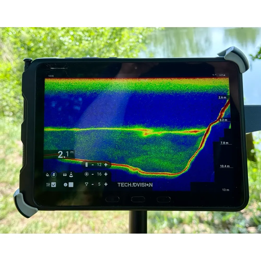 - Nauwkeurige en volledig instelbare Pulse (Red) kleuren dieptemeter/visvinder (on tablet) detecteerd wier, obstakels, vallend voer, bodemhardheid, vis en zeer veel details